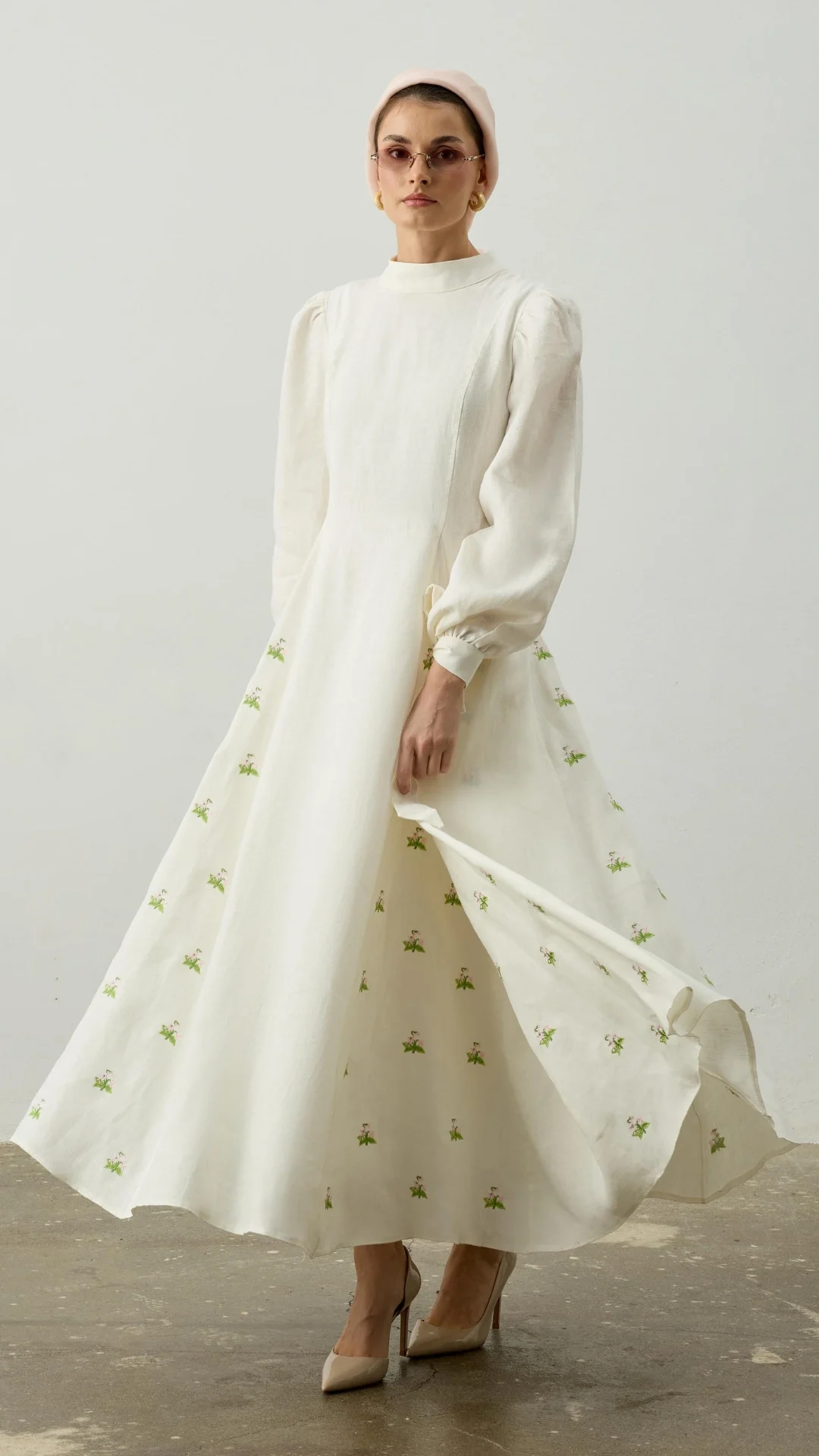 Dantel Detaylı Parçalı Saf Keten Elbise