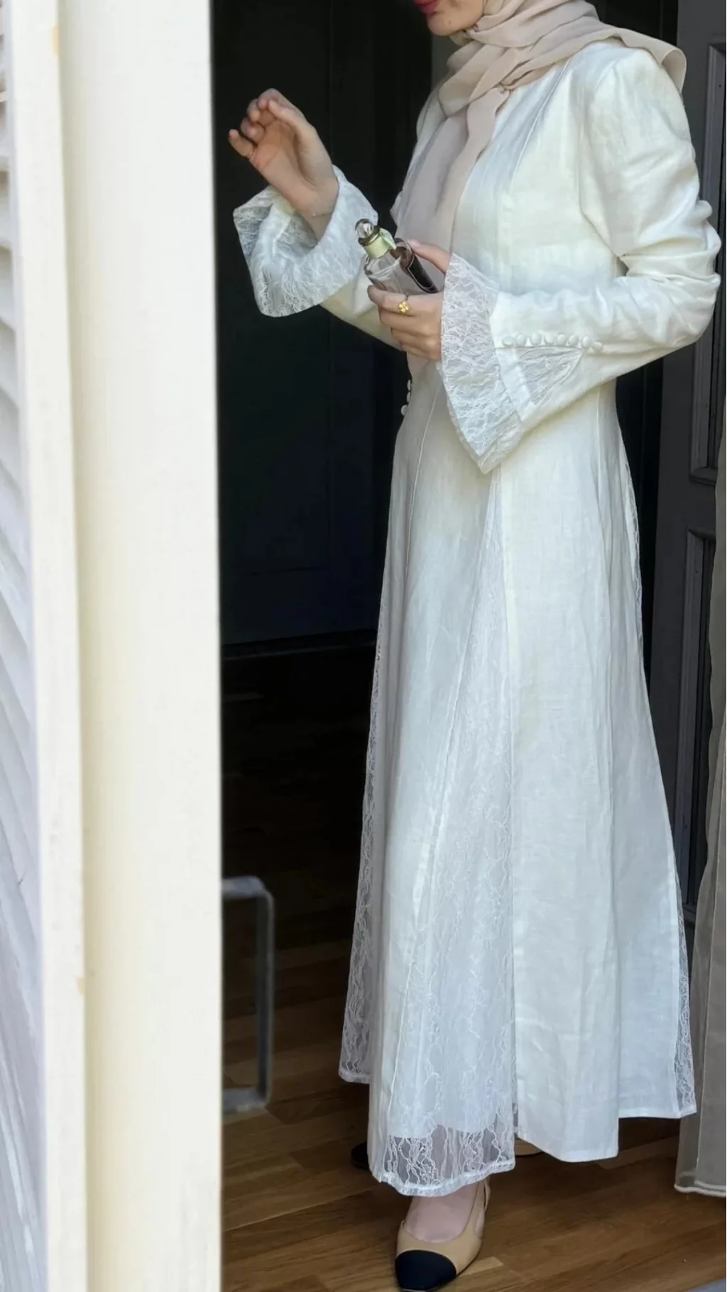 Dantel Detaylı Parçalı Saf Keten Elbise