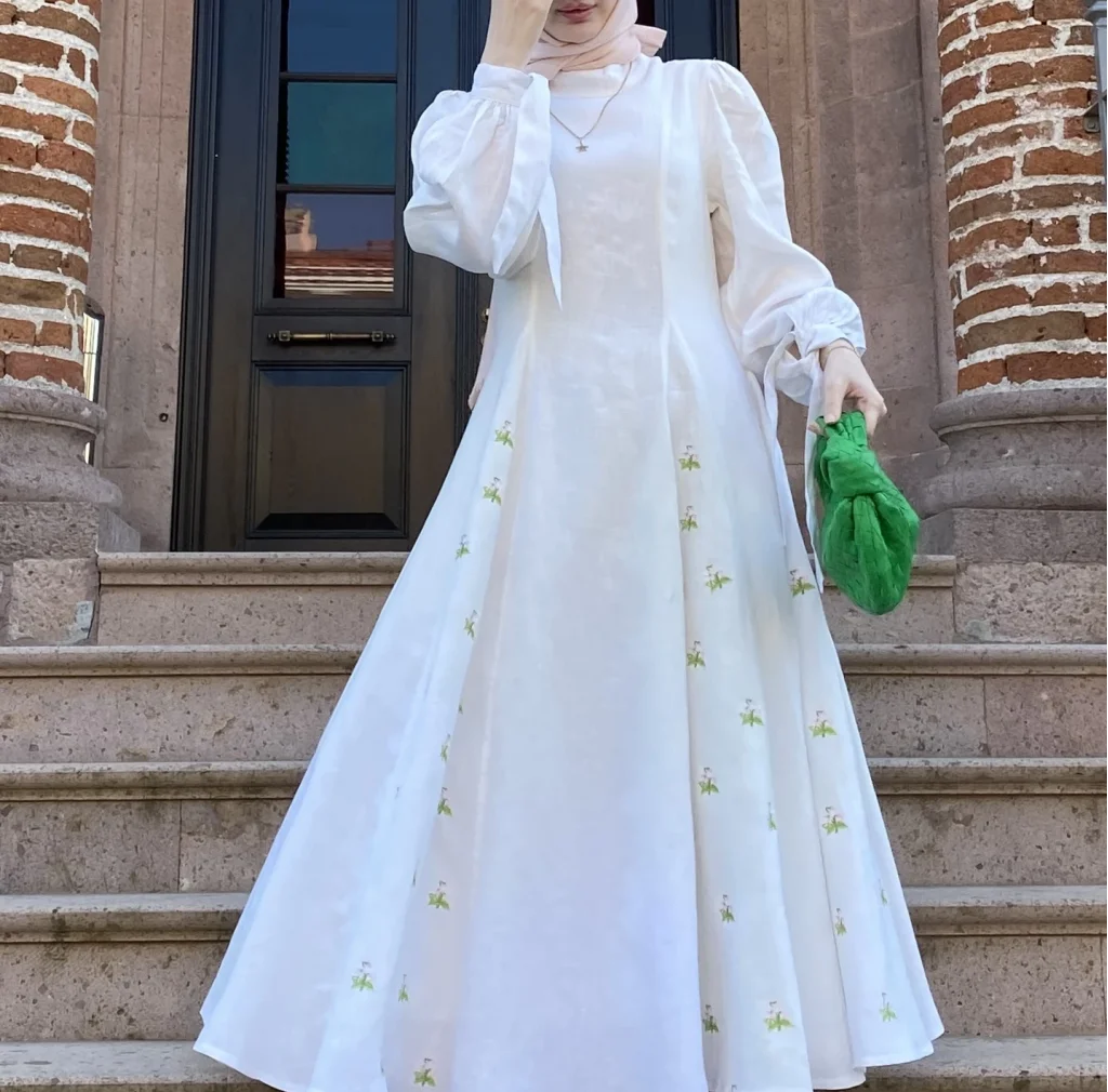 Dantel Detaylı Parçalı Saf Keten Elbise Ön Sipariş