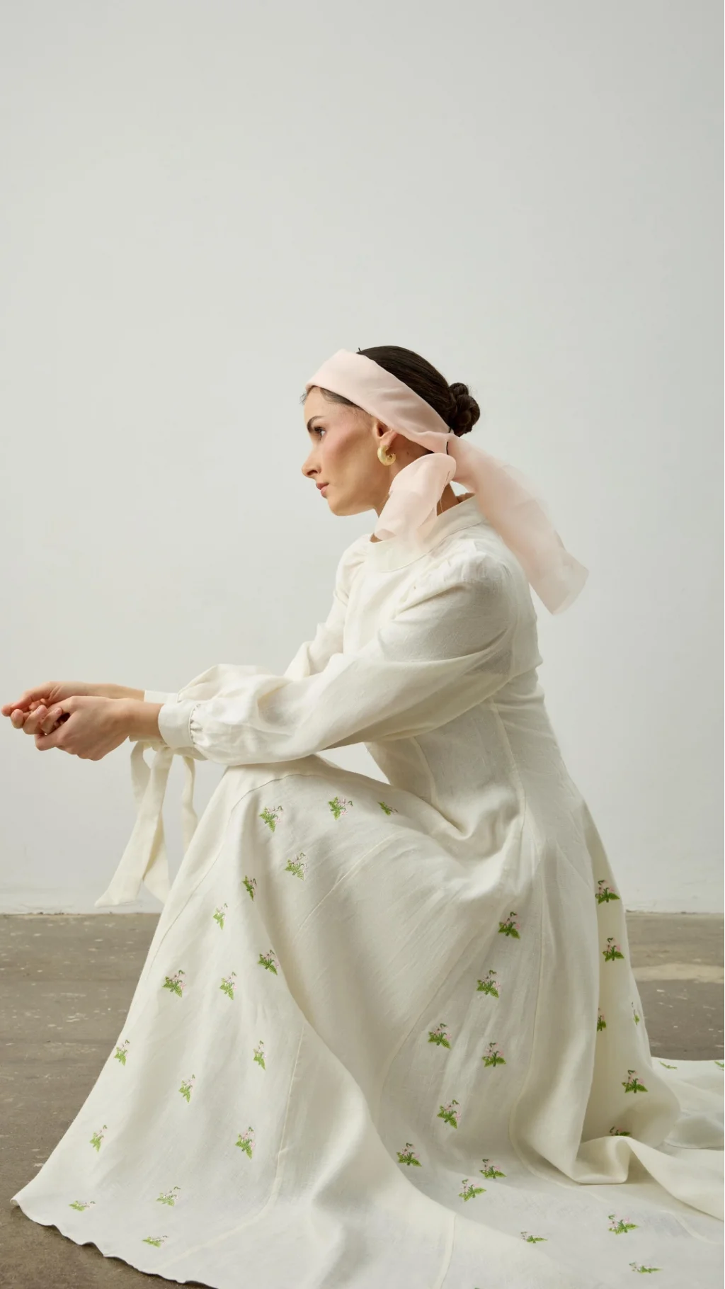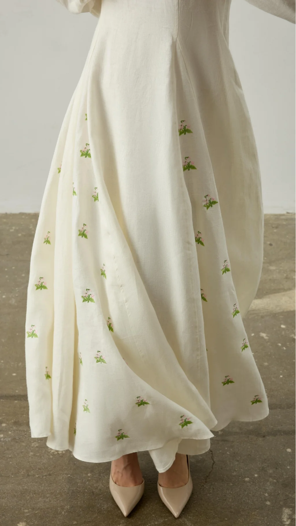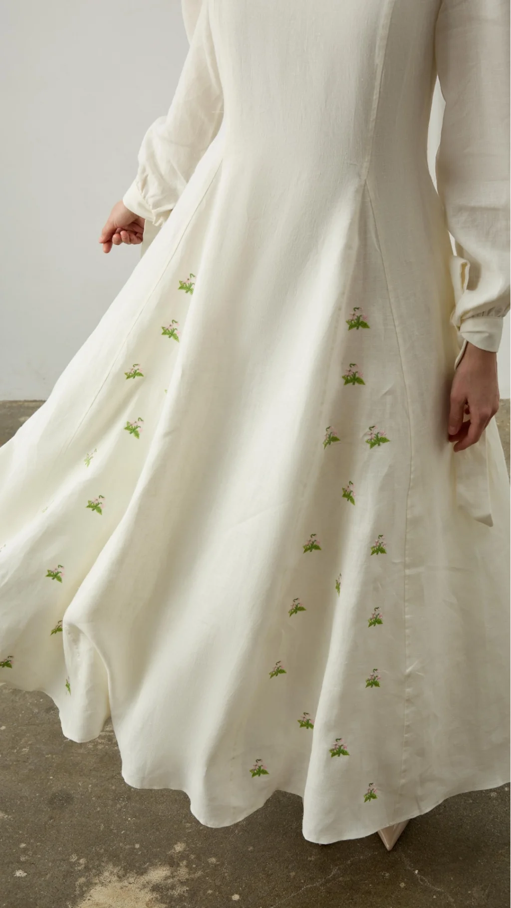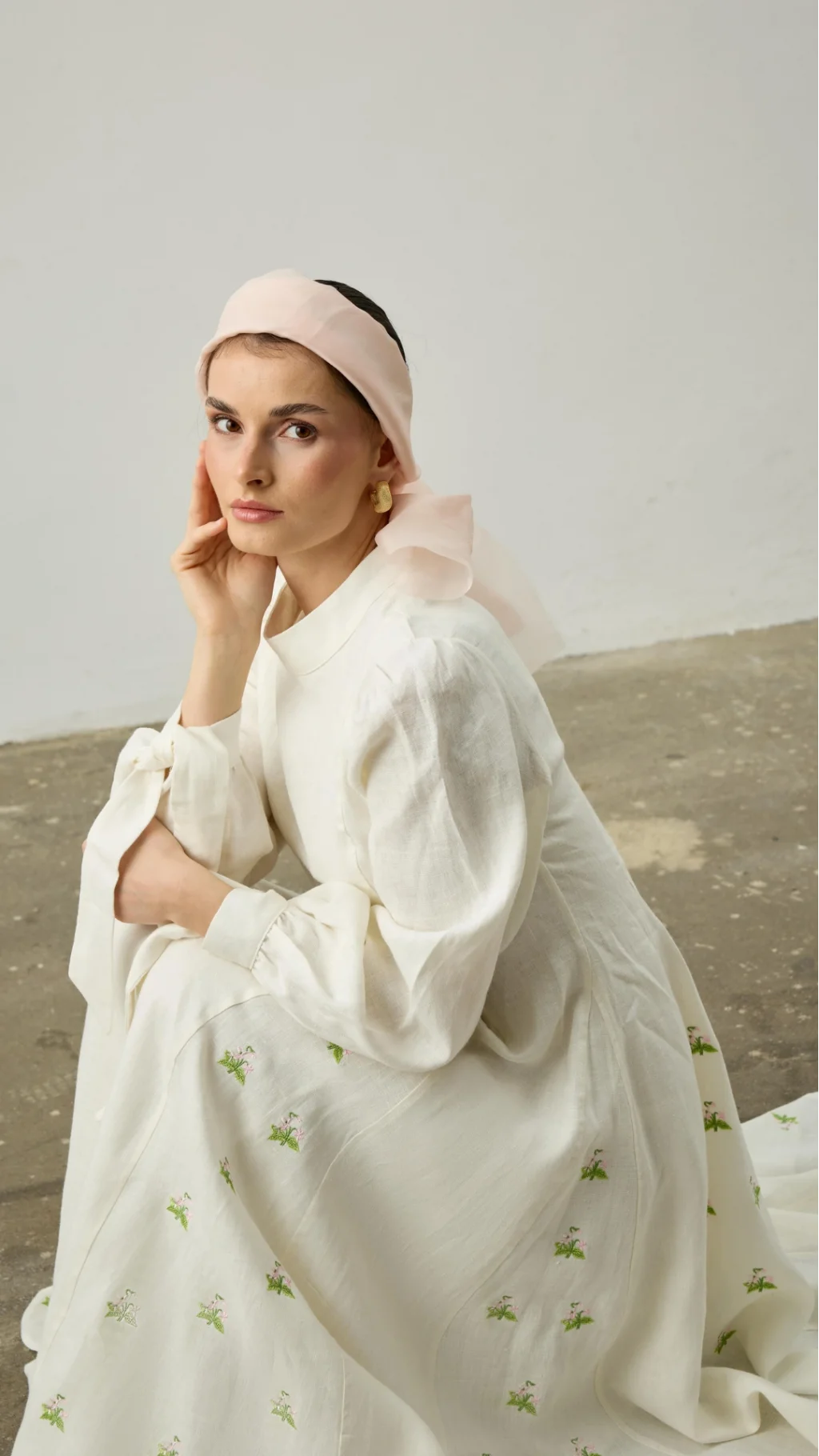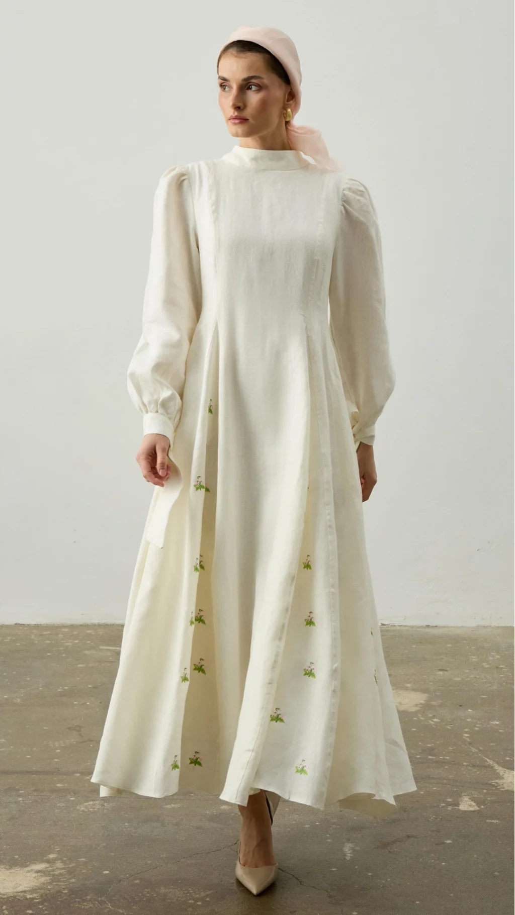 Dantel Detaylı Parçalı Saf Keten Elbise