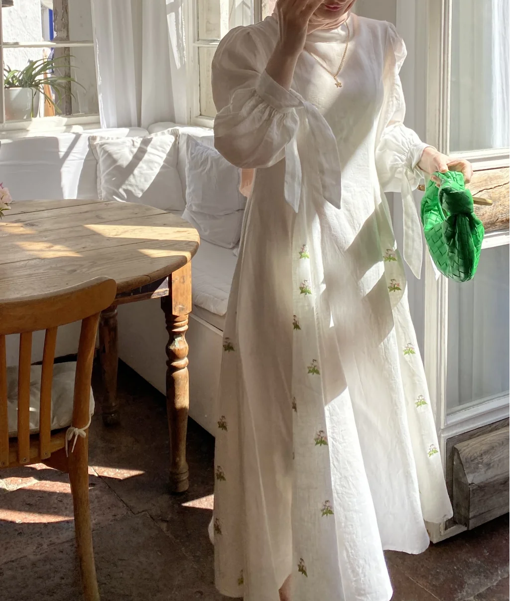 Manşet Detaylı Viskon Keten Elbise Bloom