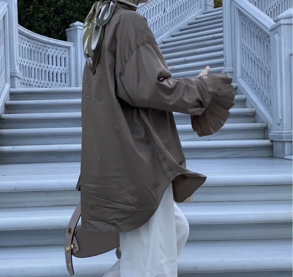 Manşet Detaylı Viskon Keten Elbise Bloom